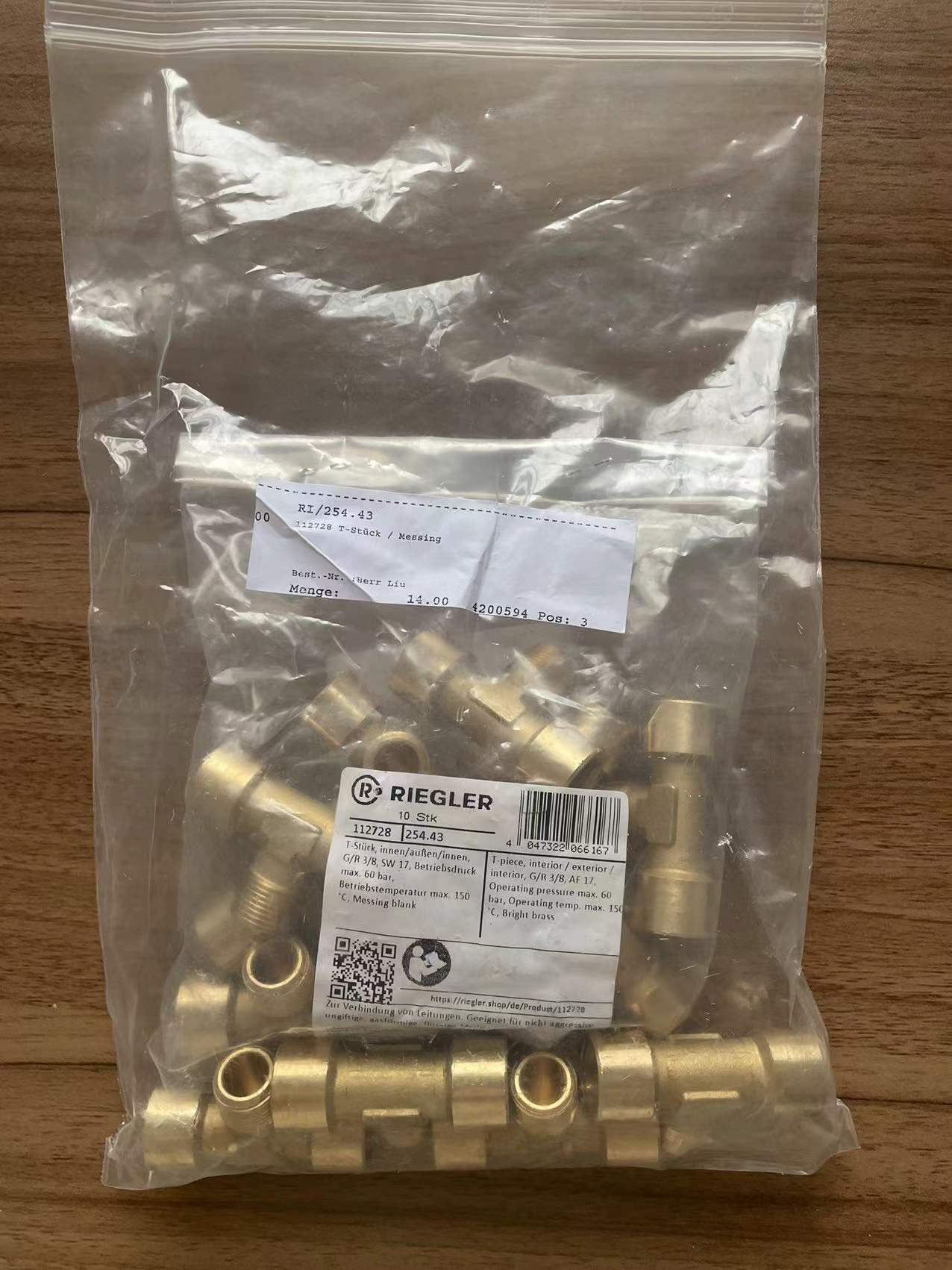 RI/254.43  112728 T-Stück / Messing